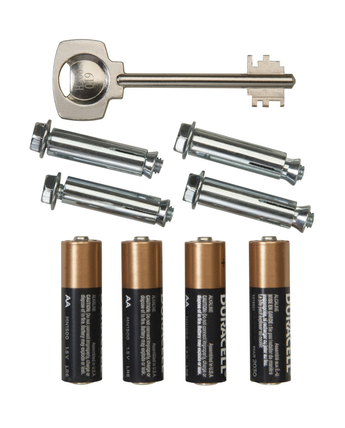 Mehāniska avārijas atslēga un iespēja izmantot 9V bateriju, ja galvenās baterijas izlādējušās.