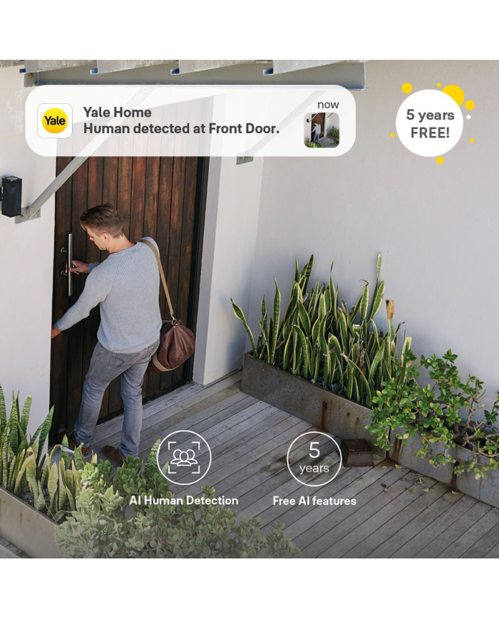 Yale Smart Outdoor Camera ir uzticams un viegli uzstādāms āra novērošanas risinājums, kas nodrošina skaidru 1080p HD attēlu, plašu redzeslauku un viedās funkcijas, lai tu vienmēr zinātu, kas notiek ap tavu māju. Tā ir radīta, lai atturētu nevēlamus viesus un sniegtu tev mieru — gan dienā, gan naktī.